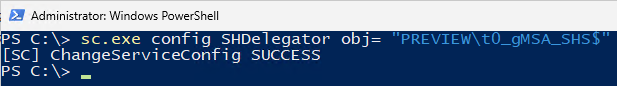 sc.exe config SHDelegator obj= "DOMAIN\\t0_gMSA_SHS$"